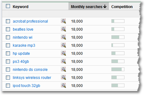 Keywords, Monthly searches, Competition